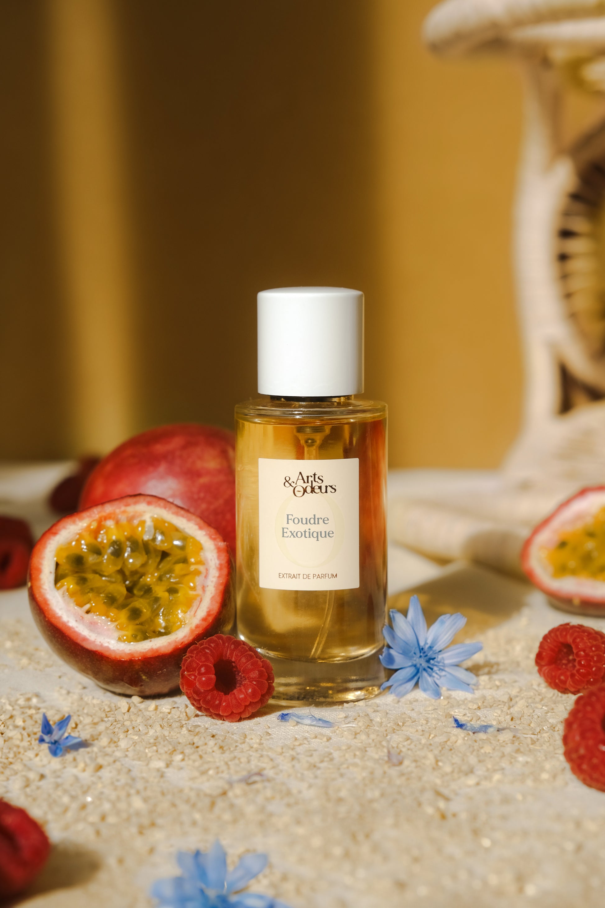 Notes de tête : bourgeons de cassis, framboise, fruits de la passion, pêche et poire.